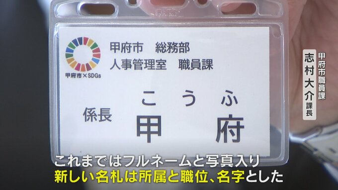 甲府市はその対応として、全ての職員の名札のフルネームの表記を見直しました。