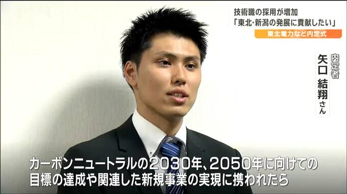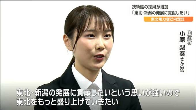 東北電力と東北電力ネットワークでは、電力の安定供給に向けた技術の継承のため来年春の内定者のうち「技術職」が123人と去年より30人以上多く、全体のおよそ8割を占めています。
