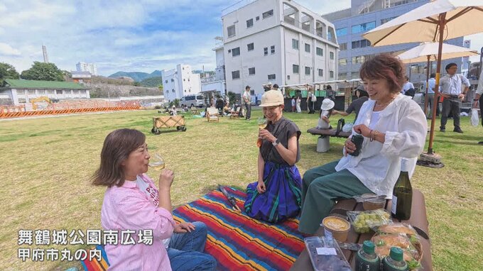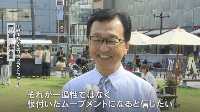 甲府市中心街のさらなる賑わいを目指し、芝生の上でランチが食べられるスポットを作るなど、人通りを増やそうという社会実験が始まりました。