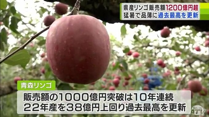 2023年に収穫された県産リンゴの販売額が1200億円を超え、過去最高になりました。猛暑の影響で果実全体が品薄になったことなどが要因とみられています。県のまとめによりますと、2023年に収穫された県産リンゴの販…
