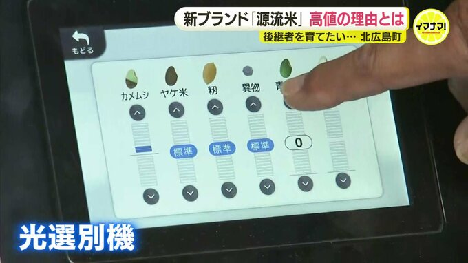受賞を受けて、隅田さんが関わる社団法人「北広島デジタル田園開発機構」は、ブランド米づくりに乗り出します。1000万円あまりをかけて精米設備を整備。光選別機は未熟な米や異物などを瞬時に取り除くことができます。