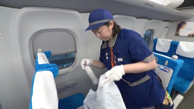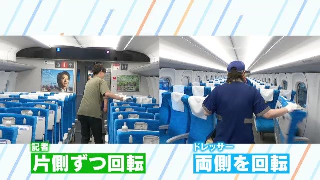 ドレッサーは、客が残していったゴミを回収した後、全ての座席を反転させます。
