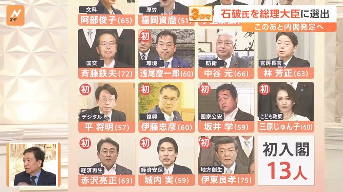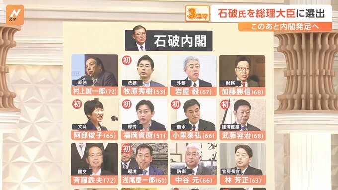 10月1日、自民党の石破茂総裁が新しい総理大臣に選出されました。夜には石破内閣が発足することになります。初入閣が13人となった石破内閣の顔ぶれは…