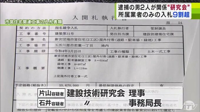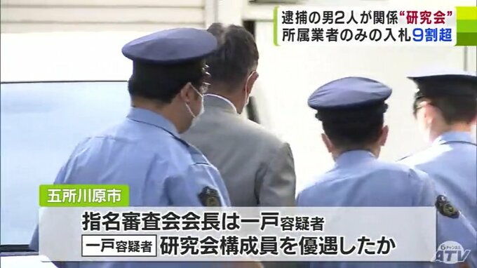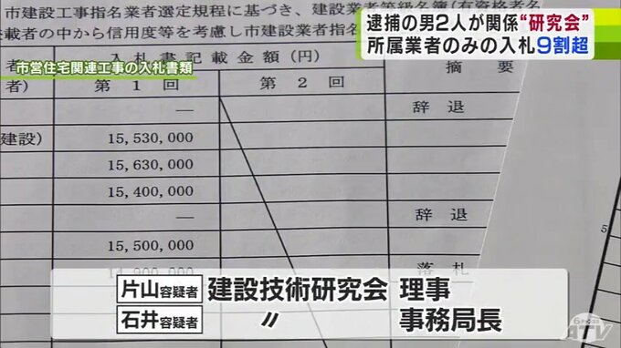 逮捕容疑が含まれる2021年度は、入札に参加する業者を決める市の指名審査会を通った入札案件59件のうち、57件は研究会に所属していた業者のみで行われていました。