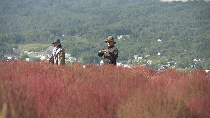 岐阜県郡上市で、赤く色付いた約1万株のコキアが見ごろを迎えています。