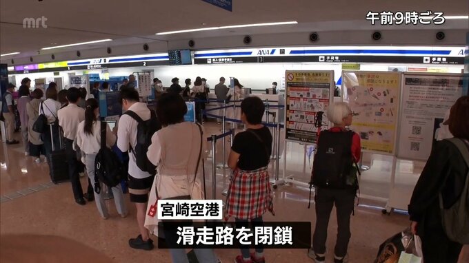 宮崎空港事務所によりますと、滑走路は2日午後9時半まで閉鎖の見込みだということです。