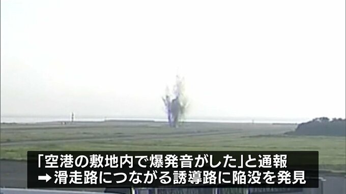 消防によりますと、「空港の敷地内で爆発音がした」という通報があり、その後、滑走路につながる誘導路に陥没が見つかったということです。