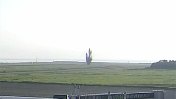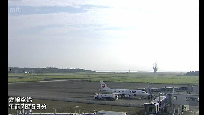 宮崎空港に設置されたカメラには、午前7時58分に何かが爆発し、土煙が吹きあがる様子が映っています。