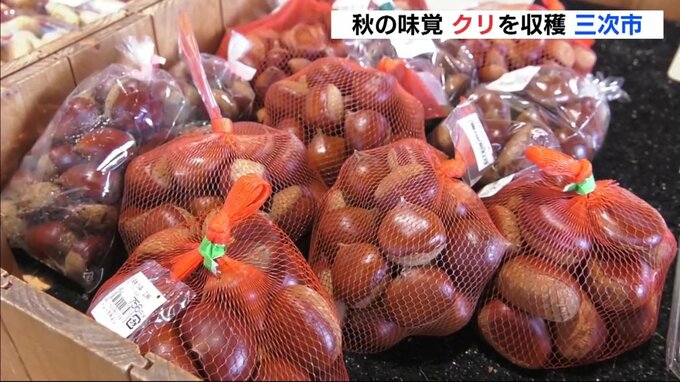 三次市東酒屋町の農業交流施設「トレッタみよし」では、9月末から店頭にクリが並び始めました。人気で、午前中には売り切れるといいます。
