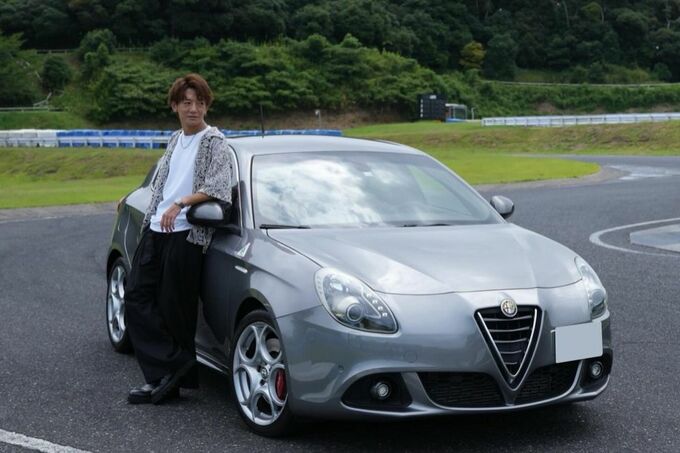 大倉士門さんは「愛車のアルファロメオ ジュリエッタQVと共に サーキットを走ってきました」と、愛車との2ショット写真をアップ。