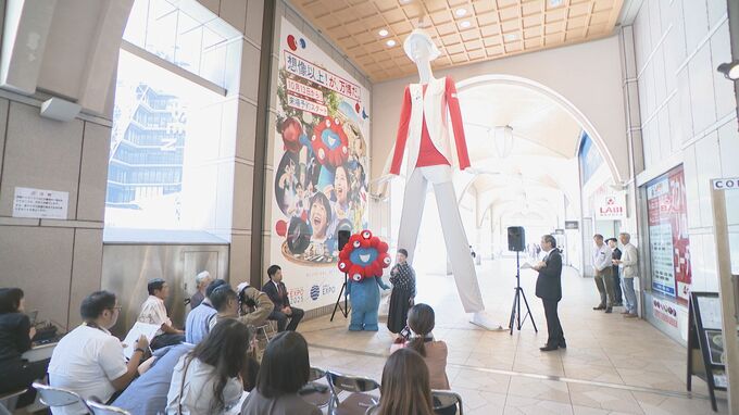 名古屋駅前のシンボル「ナナちゃん人形」が、大阪・関西万博をPRです。