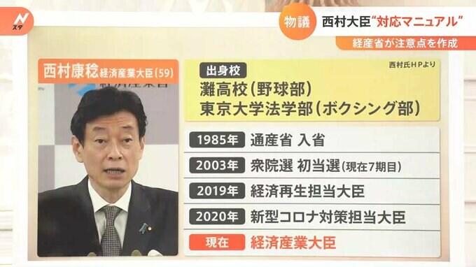 ■西村大臣“対応マニュアル” 経産省が注意点を作成
