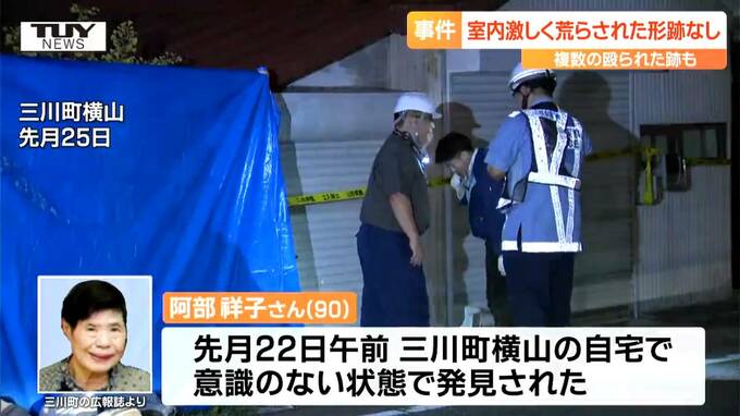 この事件は先月22日午前、三川町横山の住宅で、90歳の阿部祥子(しょうこ)さんが意識のない状態で発見されたものです。