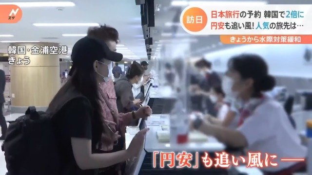 「こちらソウルにある旅行代理店では、日本への旅行の予約が増えているということです」