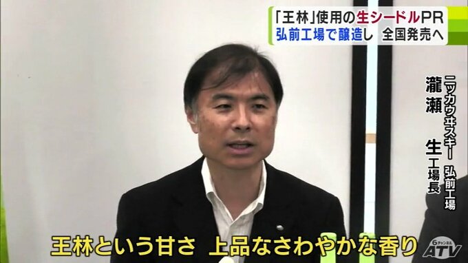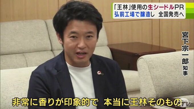 商品はニッカウヰスキーの創業90周年を記念し、弘前市にある工場で熱を加えない「生シードル」として製造したということで、宮下知事も、特徴であるリンゴ本来の香りを確認しました。