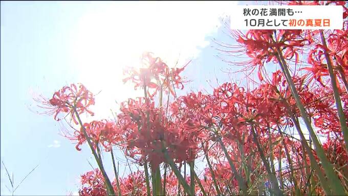 2日の宮城県内は仙台で真夏日となるなど、10月としては記録的な暑さとなりました。真っ赤なヒガンバナが咲き誇る仙台市泉区の公園ですが、2日は彼岸過ぎの10月とは思えないような暑さでした。仙台では最高気温が30.…