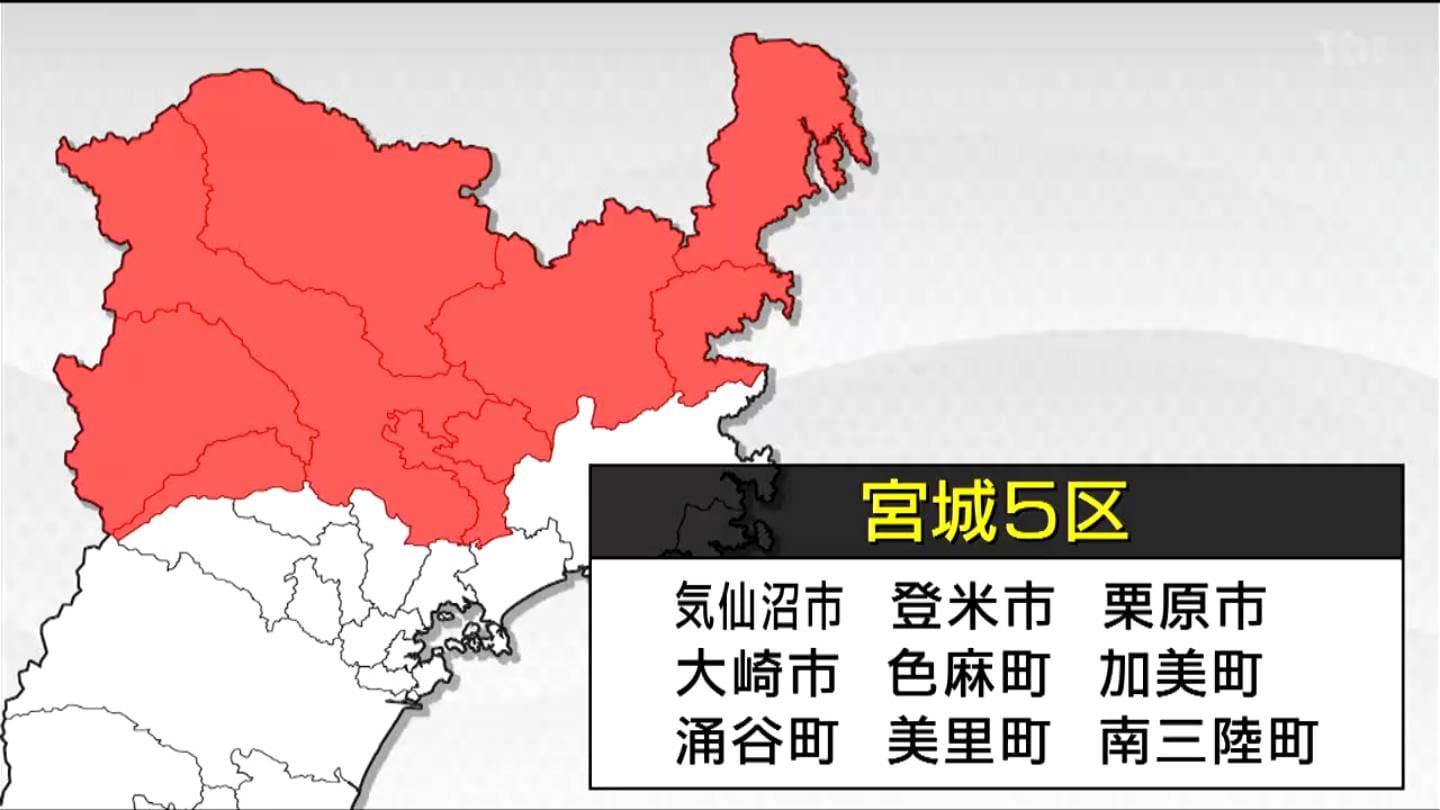 宮城県は小選挙区が前回から1つ減り5つの区に分けられます。