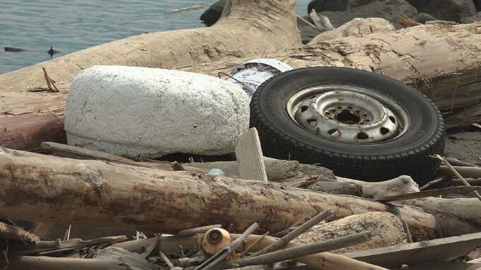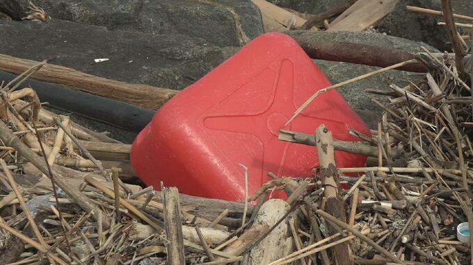 海岸の至るところに流木が漂着…。中にはタイヤやポリタンク、生活用品とみられるものの確認できました。