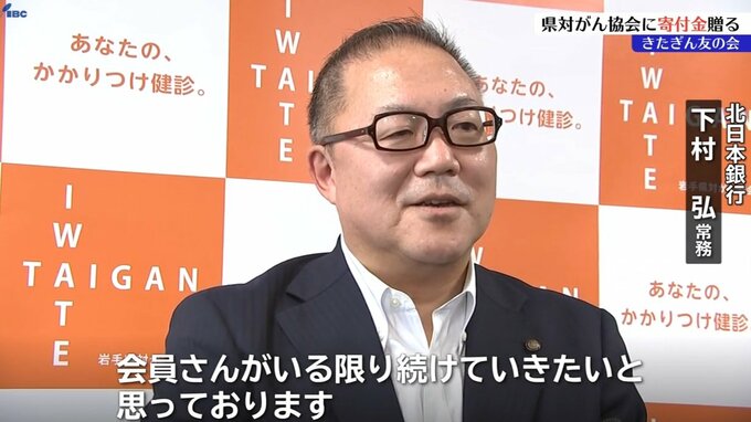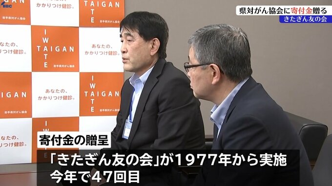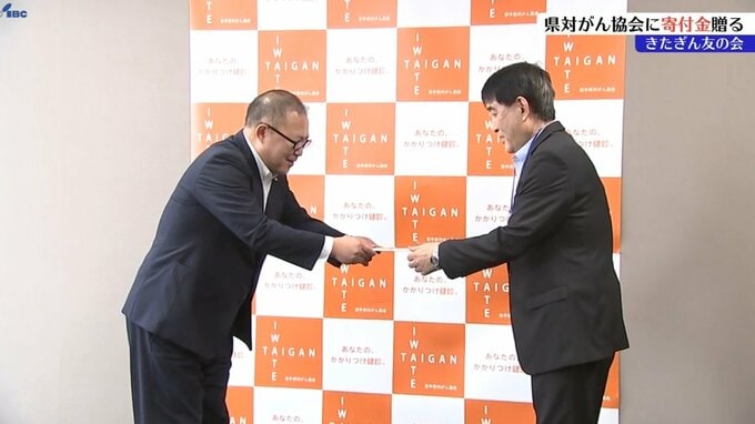 がんの早期発見やがん患者の支援に役立ててもらおうと、北日本銀行の利用者で作る団体が2日、岩手県対がん協会に寄付金を贈りました。