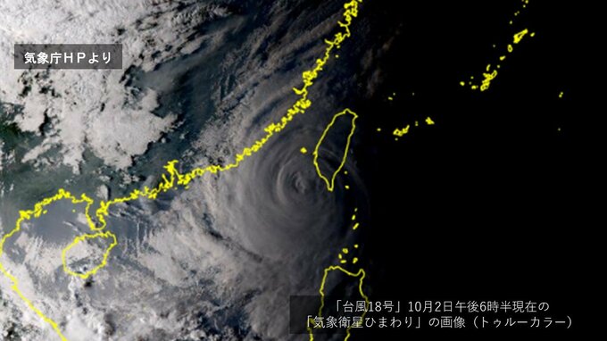 非常に強い台風第18号は、南シナ海をゆっくりした速さで北北東へ進んでいます。
