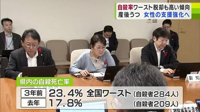 この中で自殺死亡率は2021年には23.4%で全国ワーストだったものの、翌年から減少に転じ2023年は17.8%、自殺者は209人であることが報告されました。