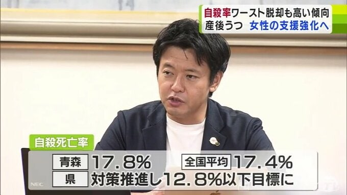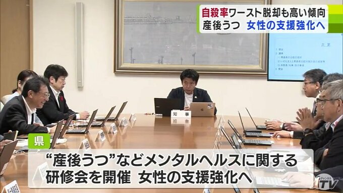 青森県の自殺対策を話し合う会議が開かれ、自殺者は減る傾向にあるものの、全国的にみると依然として多いことから、いわゆる“産後うつ”を含め、女性に対する支援の強化を推し進めていくことを確認しました。