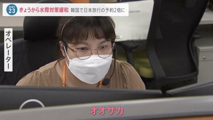 「こちらソウルにある旅行代理店では日本への旅行の予約が増えているということです」