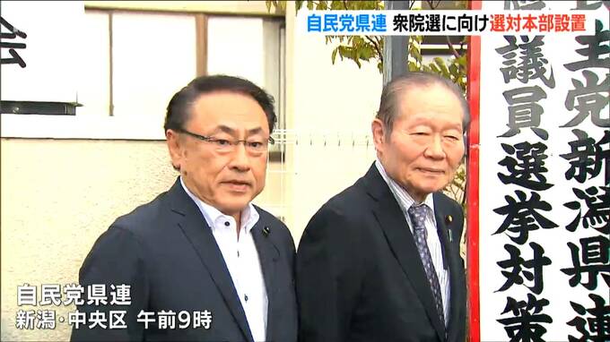 来る衆院選に向けて自民党新潟県連が選挙対策本部を設置し、佐藤信秋会長は「全員当選へ一丸となって取り組む」と意気込みを語りました。自民党県連の佐藤信秋会長らによって立てかけられた看板。選挙対策本部の設…