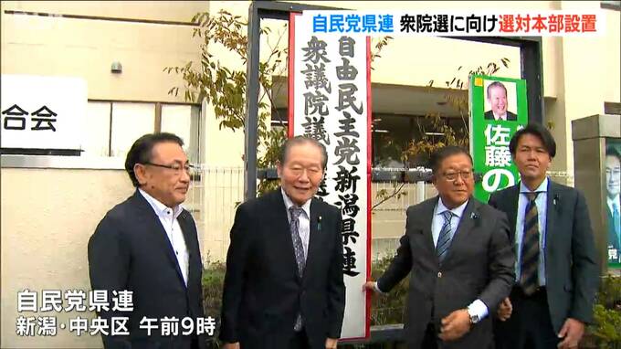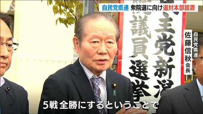 来る衆院選に向けて自民党新潟県連が選挙対策本部を設置し、佐藤信秋会長は「全員当選へ一丸となって取り組む」と意気込みを語りました。