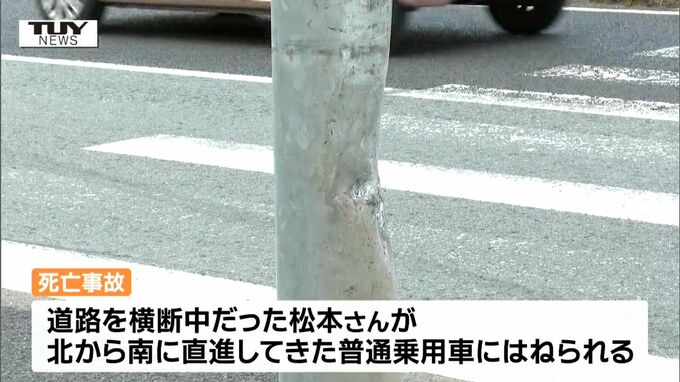警察と消防によりますときょう午前0時半ごろ、山形市東青田の国道13号で道路を横断中だった松本さんが北から南に向かって直進してきた普通乗用車にはねられたということです。
