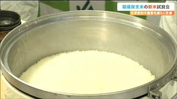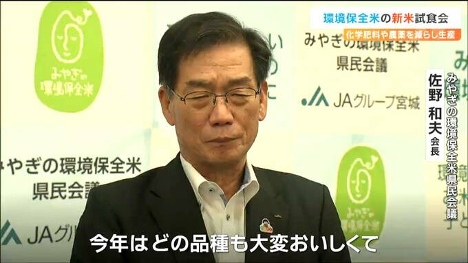 化学肥料や農薬の使用量を減らして栽培された環境保全米の新米の試食会が3日、仙台で行われました。今年は天候に恵まれて大変出来が良いということです。