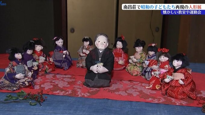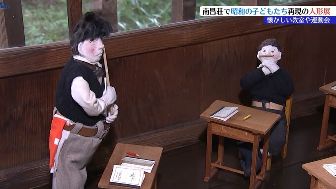 小学校の教室や運動会など、昭和30年代の子どもたちを再現した創作人形の展示会が、盛岡市の南昌荘で始まりました。