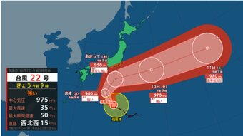 台風22号の位置、勢力の今後は?最大瞬間風速65メートルまで発達予想 近畿・東海・関東接近、その後太平洋へ…気象庁発表データで詳しく見る 全国主要都市の週間天気予報も掲載