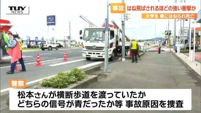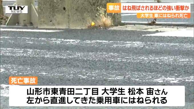 道路を横断していた山形市東青田二丁目の大学生松本宙(まつもと・そら)さんが、左から直進してきた乗用車にはねられました。