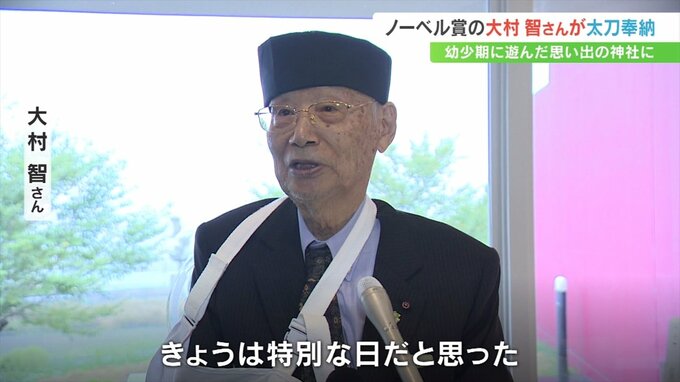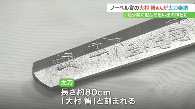 奉納された太刀は、9年前の大村さんのノーベル賞受賞を祝って小野さんが寄贈した「短刀」とともに韮崎市の大村美術館に展示されます。