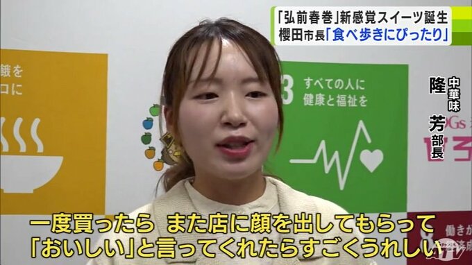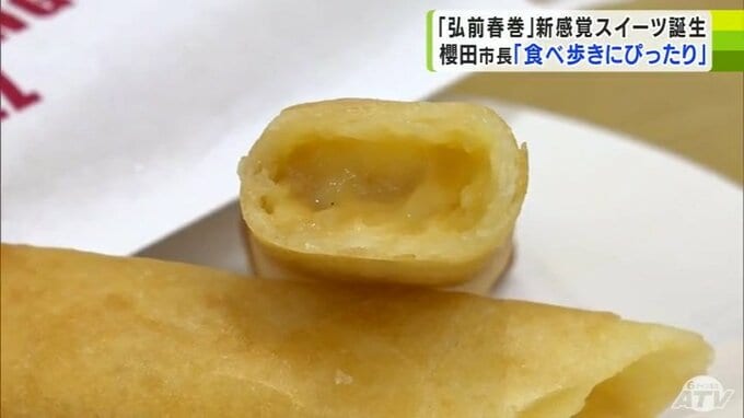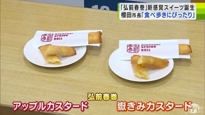 3日にお披露目されたのは「弘前春巻 アップルカスタード」と「弘前春巻 嶽きみカスタード」です。