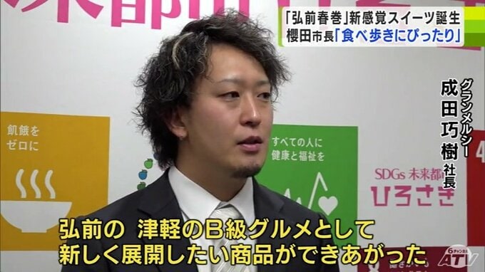「弘前の、津軽のB級グルメとして新しく展開したい商品ができあがった。パリパリだし、カスタードはトロトロだし、でも嶽きみやリンゴの食感を楽しめる商品」