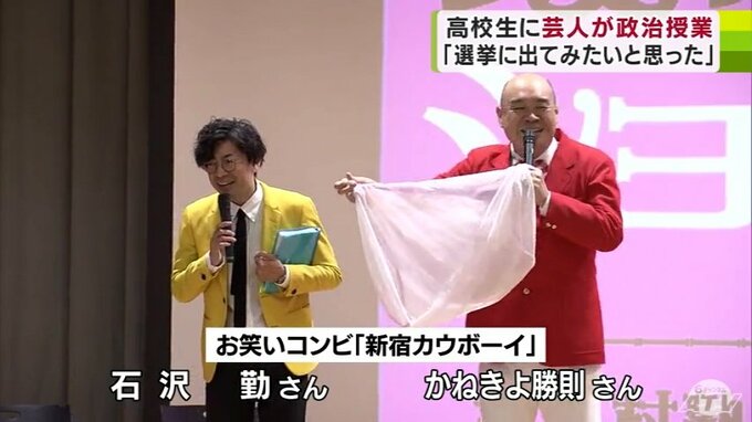 「政治」と「お笑い」。かけ離れているようにも思えるこの2つを組みあわせた授業が、青森市の高校で行われました。講師を務めたのは現役のお笑い芸人です。青森商業高校で行われた政治の大切さを伝える出張授業。…