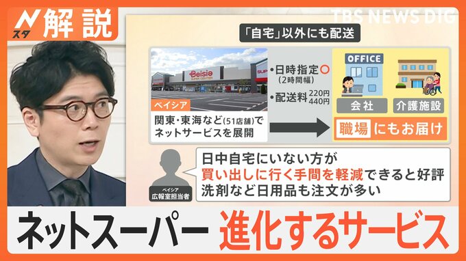 自宅に届くだけではありません。いま、ネットスーパーが進化しているんです。井上貴博キャスター:子育て世代の皆さんはもちろんのこと、単身者にとってもネットスーパーは大変強い味方といえます。自宅以外にも配…