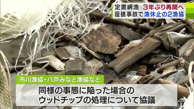 漁の再開に向けて動き出した中、船に積載されていたとみられるウッドチップが漁港に漂着したことで足踏みしていました。