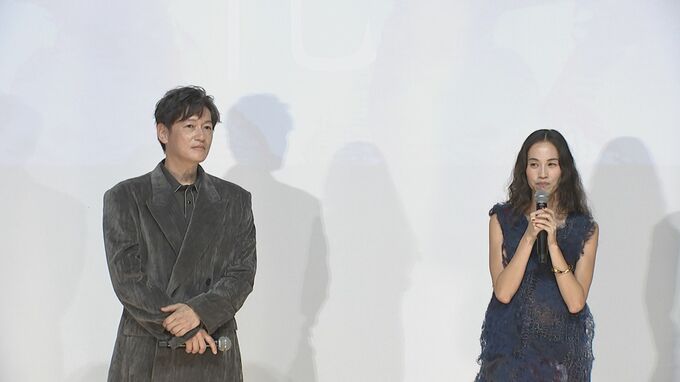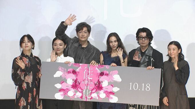 俳優の井浦新さん、水原希子さん、三浦透子さん、斉藤由貴さん、永瀬正敏さん、監督の甲斐さやかさんが映画「徒花-ADABANA-」の完成披露上映会に登場しました。