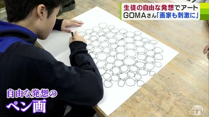 3日、生徒たちが挑戦したのはGOMAさんの代名詞とされる「ペン画」です。