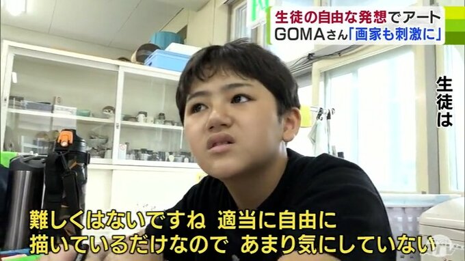 青森県弘前市の特別支援学校で、国内外で活躍するアーティスト・GOMAさんの芸術教室が行われ、生徒たちは自由な発想を生かしGOMAさん顔負けの絵を描きました。