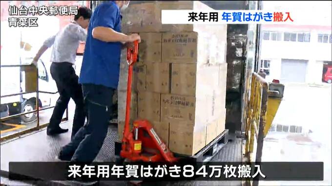 青葉区の仙台中央郵便局には、午前9時頃、来年用の年賀はがきを乗せたトラックが到着し、段ボール210箱84万枚が搬入されました。