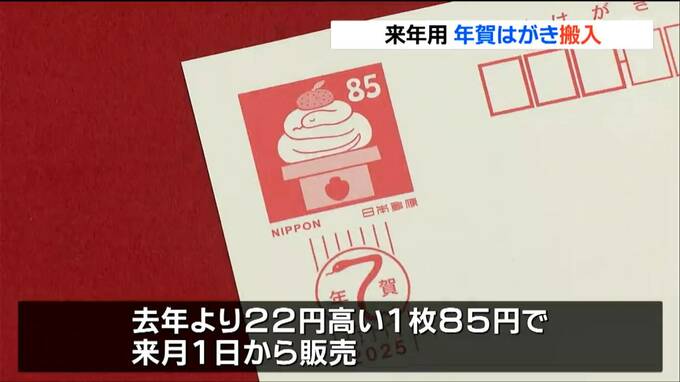 10月から郵便料金が値上げされたことを受け、年賀はがきも去年より22円高い1枚85円で11月1日から販売されます。