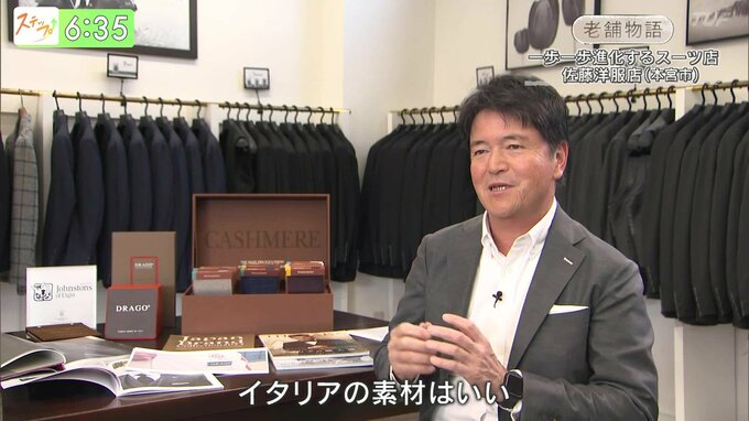 ---佐藤社長「イタリアの素材は結構良い。売りたい・売ると思ったら『反(たん)』で買ってる。コストも抑えられる。」