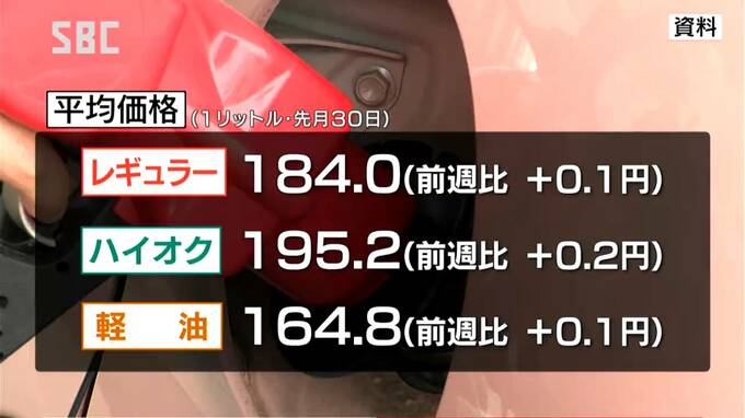 資源エネルギー庁によりますと、9月30日時点での県内のガソリン1リットルあたりの平均小売価格は、レギュラーが前の週より0.1円高い184円。