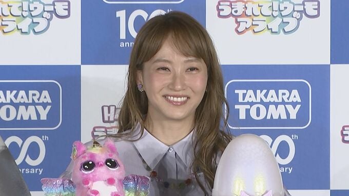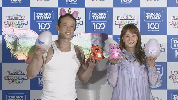 お笑い芸人の庄司智春さん、タレントの藤本美貴さん夫妻が、「うまれて!ウーモ アライブ」の新商品発表会に登場しました。