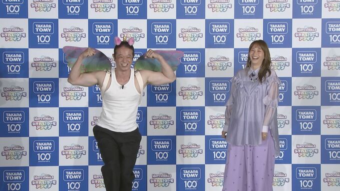 庄司さんは、藤本さんのお世話によって「ウーモ」の孵化シーンを再現し登場。虹色の翼とユニコーンの角を付け、「ウーモ」に扮した庄司さんがたまごから出てくると藤本さんは、”100点満点。すごい可愛いし、似合っていますね。羽も角も”と絶賛すると 庄司さんは、”この姿で家に帰ったらかなり人気者。持って帰りたい”と気に入っている様子。