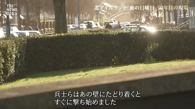 兵士たちは乗ってきた車両を降りて、うち何人かが壁のところまで来ました。その1人が「兵士F」でした。イニシャルでしか言えないのは1972年以来、彼には匿名性が保証されているからです。